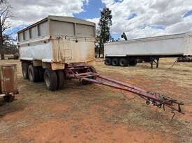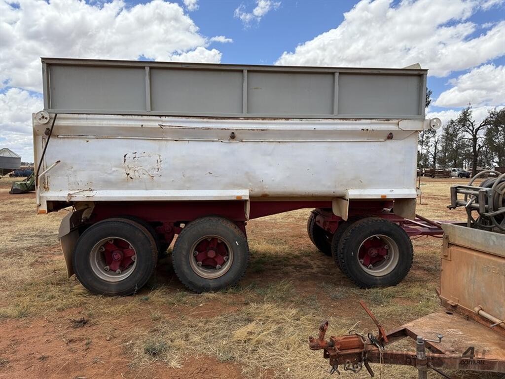 1986 Hamelex White Tri Axle Super Dog, VIN: R78T03641086 BPW axles on spring suspension, spider rims, dolly lock, well built steel bin extension to suit grain and gravel cartage. Bin Measurements: length 5.12m, width 2.46m, height1.75m. Located Lake Cargelligo NSW.