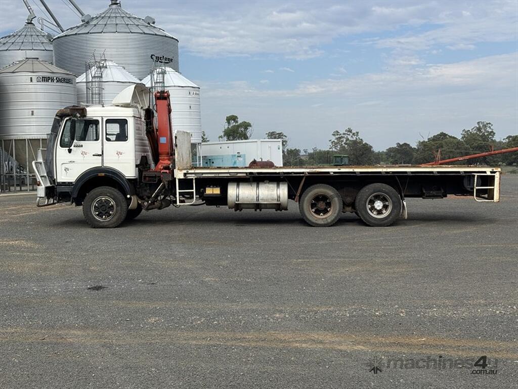 1986 MERCEDES BENZ 2228 6X4 TRUCK WITH HIAB. VIN: 6995, SHOWING 624,758KMS, OFFERED UNREGISTERED WITH NO COI. LOCATION: 30KMS EAST OF SPRINGSURE, QLD 4722. INSPECTIONS & COLLECTIONS: MONDAY TO FRIDAY, 8AM TO 4PM. ENQUIRIES: MATT BEARD ON