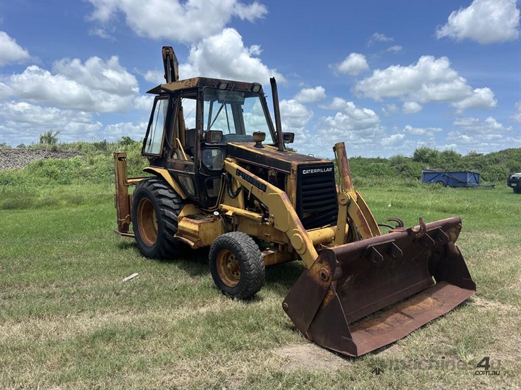 1987 CAT 428 BACKHOE, S/N: 6TC02266, E/N: U208699P, 8,112 HOURS SHOWING. LOCATION: PROSERPINE, QLD 4800. INSPECTIONS & COLLECTIONS: BY APPOINTMENT ONLY. ENQUIRIES: JOHN MCDOUGALL ON OR JOHNEMERALDAUCTIONCENTRE