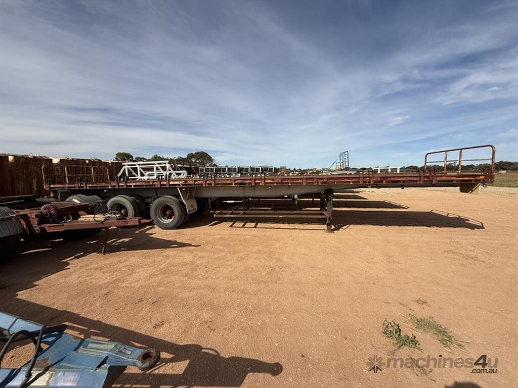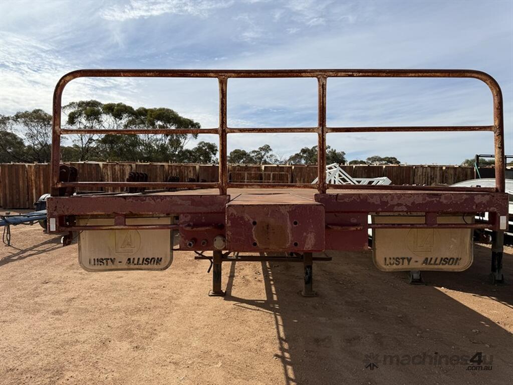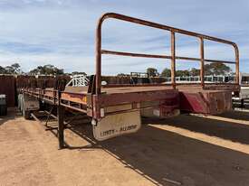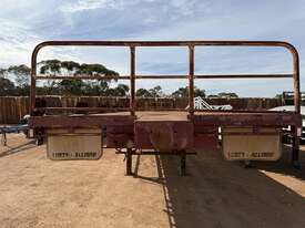 1987 LUSTY Convertible Trailer, CHASSIS LE871002, GP axles on spring, spider rims, grape bin brackets, 2 toolboxes, gate rack, LED lights, bow rack, ring feeder, water tank not usable, hydraulic tank, no hoist. Measurements: Pin to front 1.3m, pin to hoist well 1.65m, 12.5m L x 2.5m W. Located Balranald, NSW.