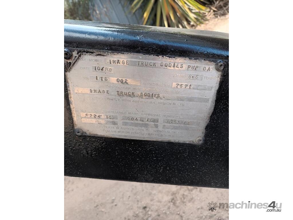 A durable and practical curtainside tag trailer by Image Truck Bodies, ideal for general freight and versatile transport needs. This unit features a barn door rear, pentile hitch, and solid spring suspension, ready for work or repurposing.