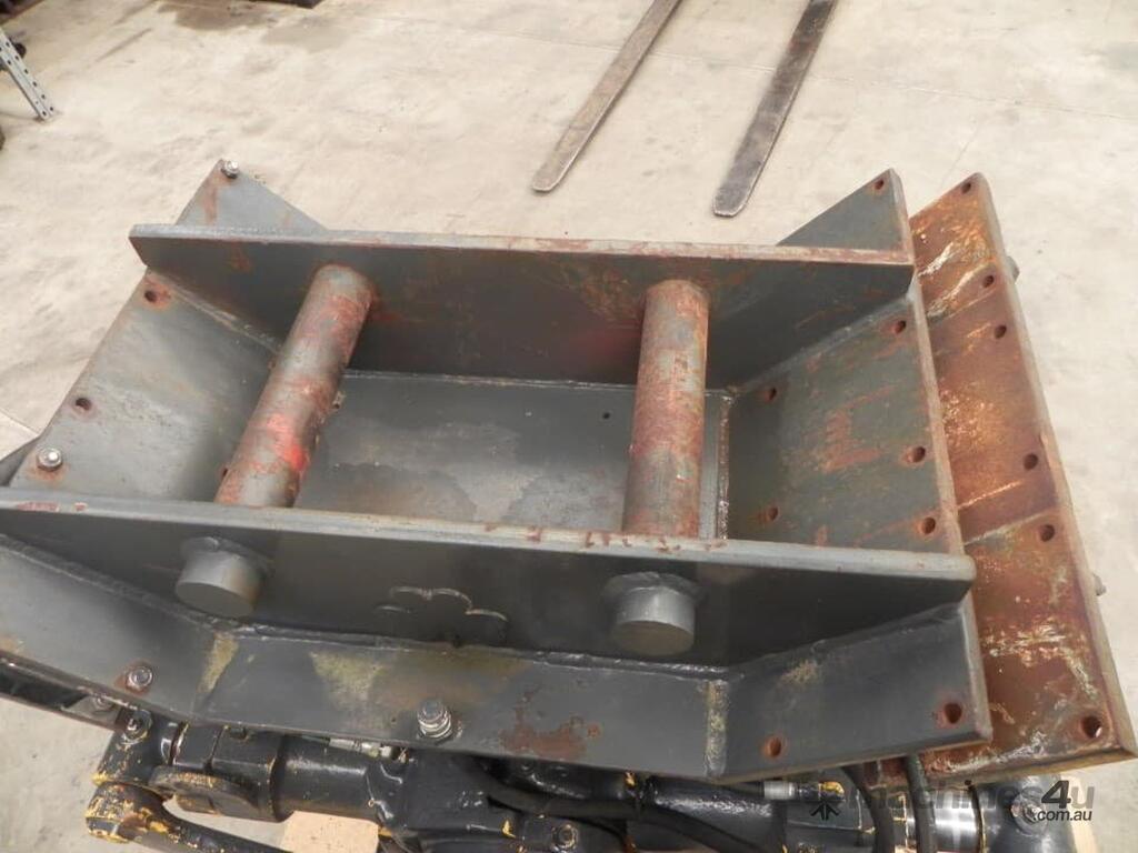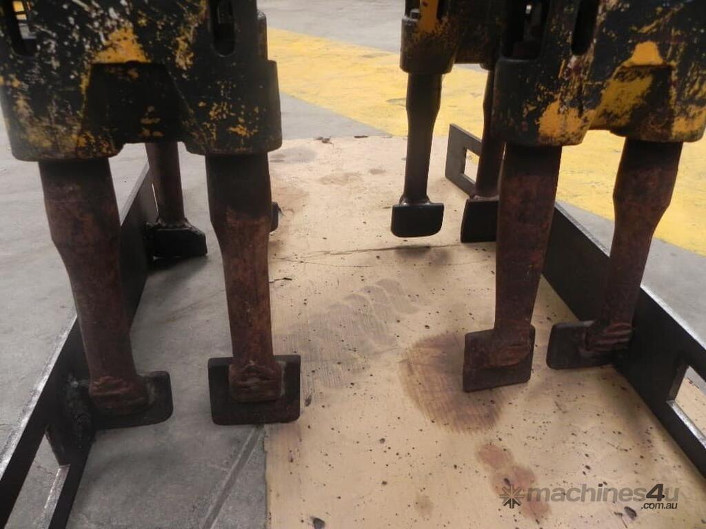 Heavy-duty 8-head vibrating ballast tamper designed for efficient ballast compaction and maintenance work. Excavator mountable and in working condition, ready to go straight to the job site.