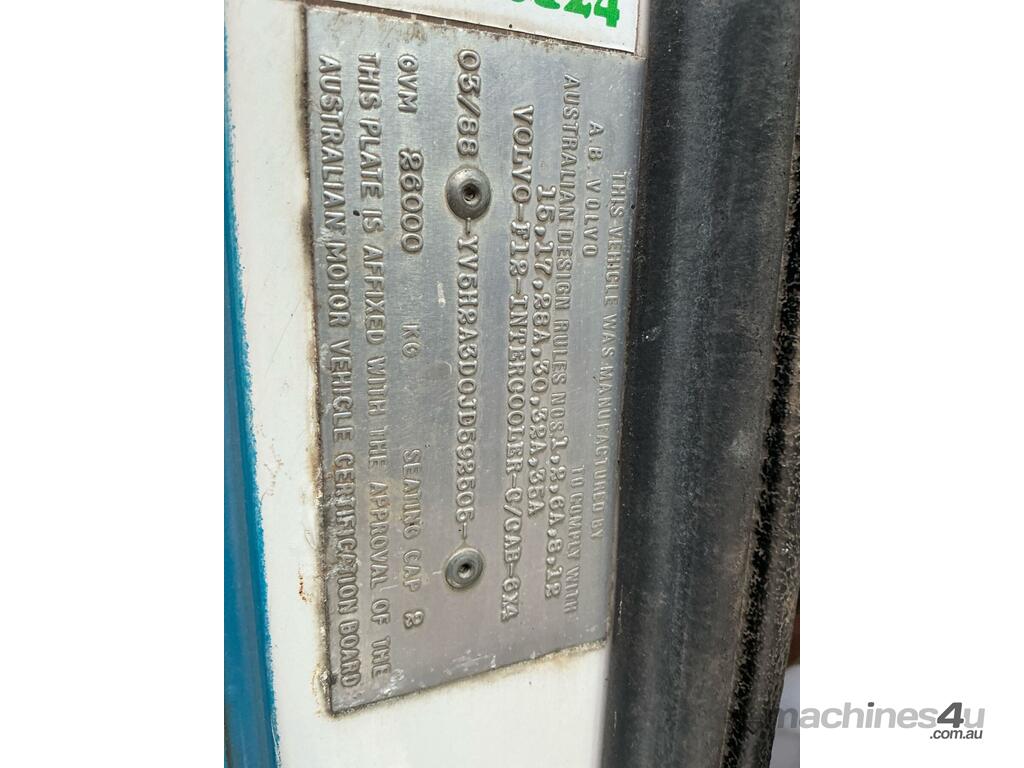 CP: 03/1988,Volvo,F12,Tipper,Manual,Diesel,941284 (Kms. Showing on Odometer),Hourmeter not visible,Colour: Blue,Rego. No: NP(XSY708), Unregistered VIC,VIN: YV5H2A3D0JD592505,Length: 24 ft,GVM: 26000,Sold with No Plates,WOVR Status: WOVR N/A,Incident Type: Impact