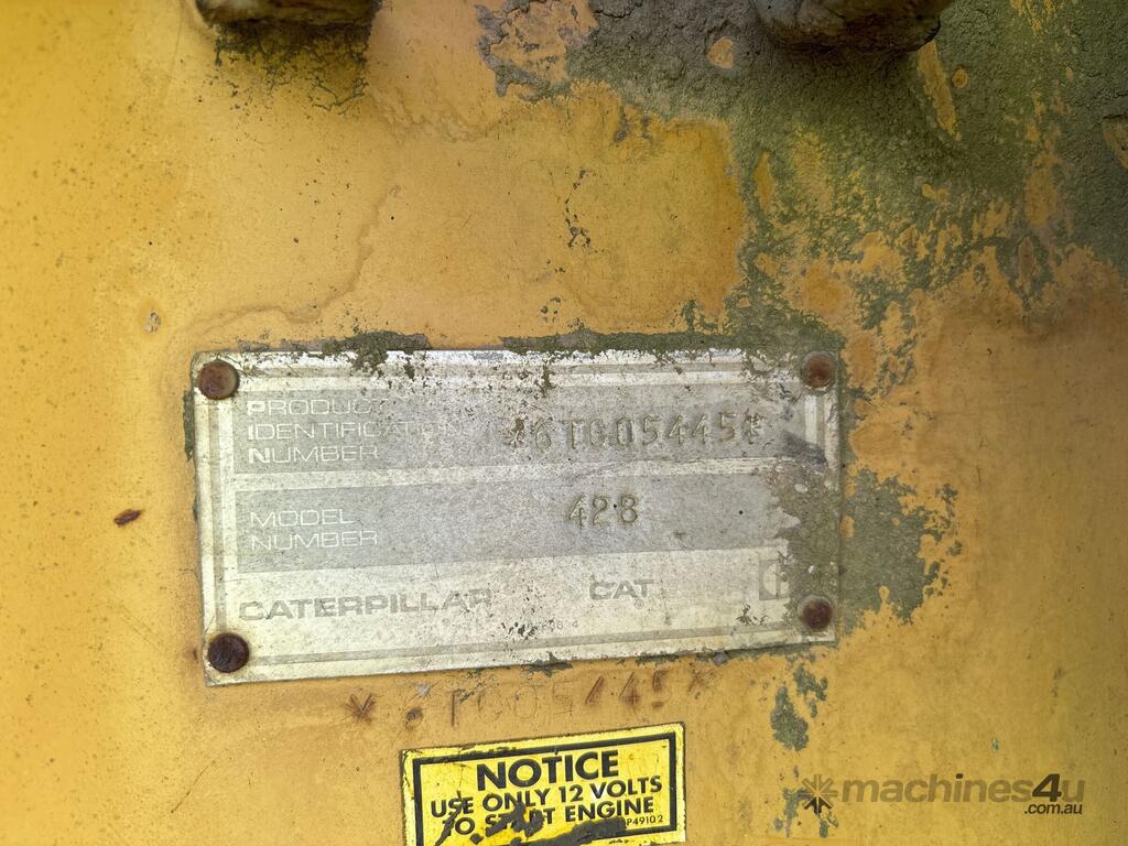 CP: CIRCA 1989,Caterpillar,428,Backhoe/ Loader,4 Cyl,Diesel,Odometer not visible,12260 (Hrs. Showing on Hour meter),Colour: Yellow,Rego. No: NP(EFM410), Unregistered VIC,Serial No: 06TC05445,Sold with No Plates