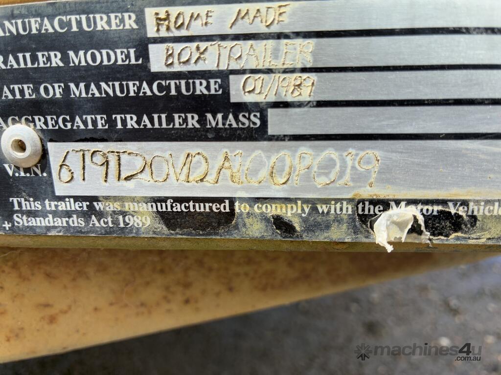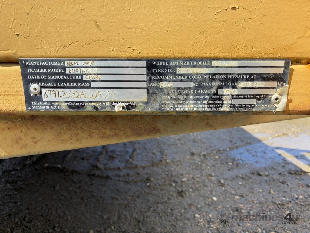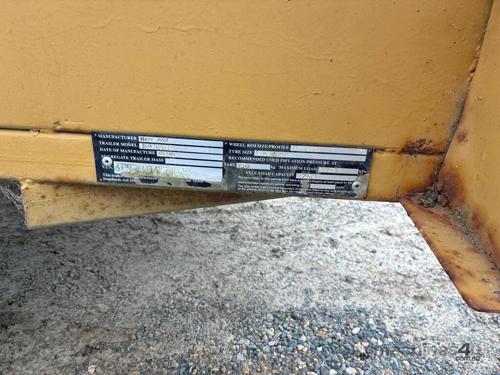 CP: 01/1989,Homemade,Box Trailer,Hubometer not visible,Colour: Yellow,Rego. No: NP(T75939), Unregistered VIC,VIN: 6T9T20V12A100P019,Sold with No Plates
