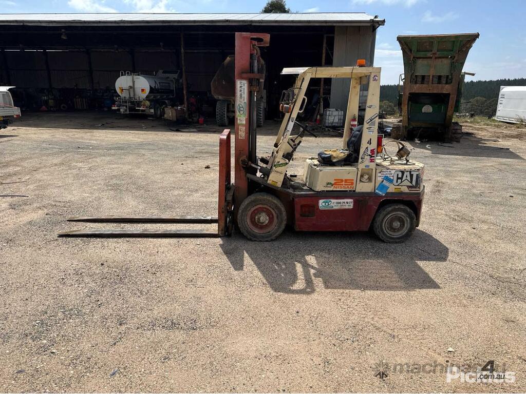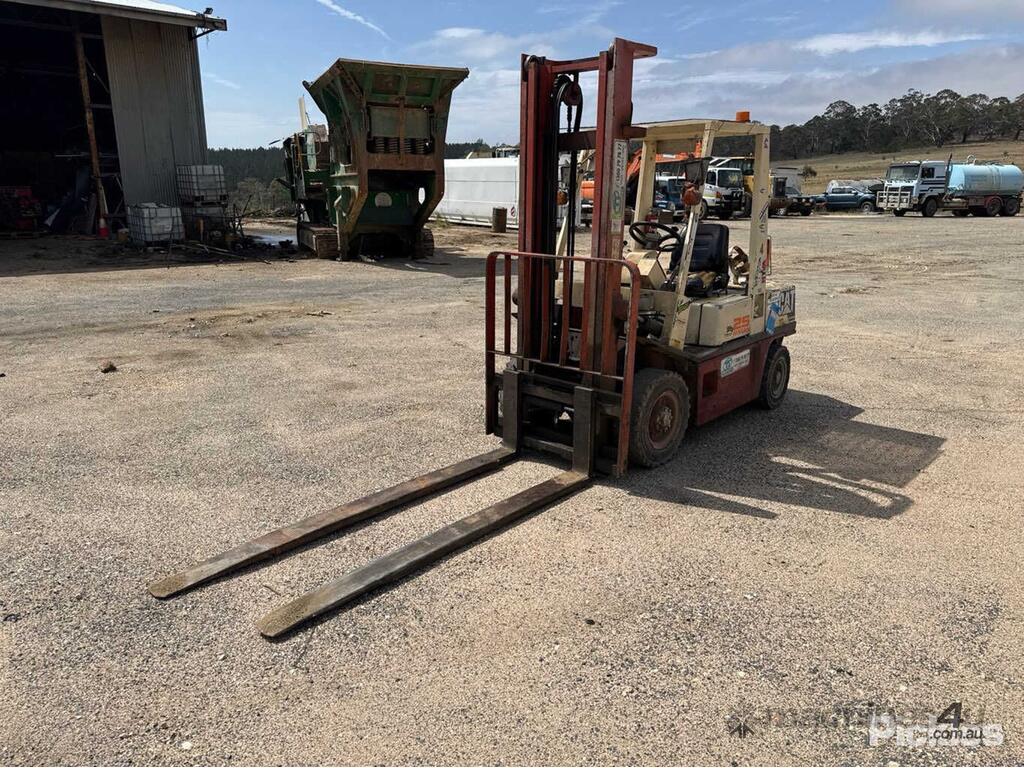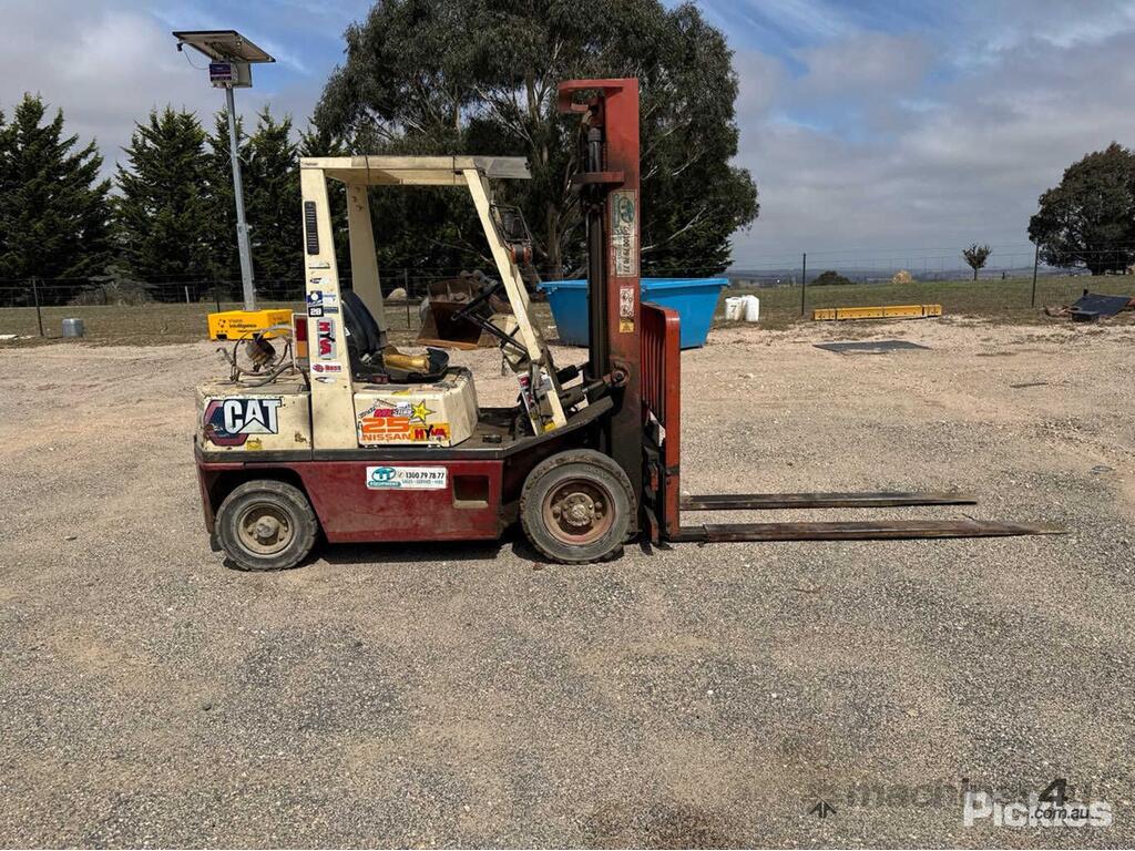 CP: CIRCA 1991,Built: 01/1991,Nissan,PH02,Forklift,4 Cyl,Petrol & LPG (Dual),Odometer not visible,1550 (Hrs. Showing on Hour meter),Colour: Red,Unregistered,Serial No: 003454,Sold with No Plates