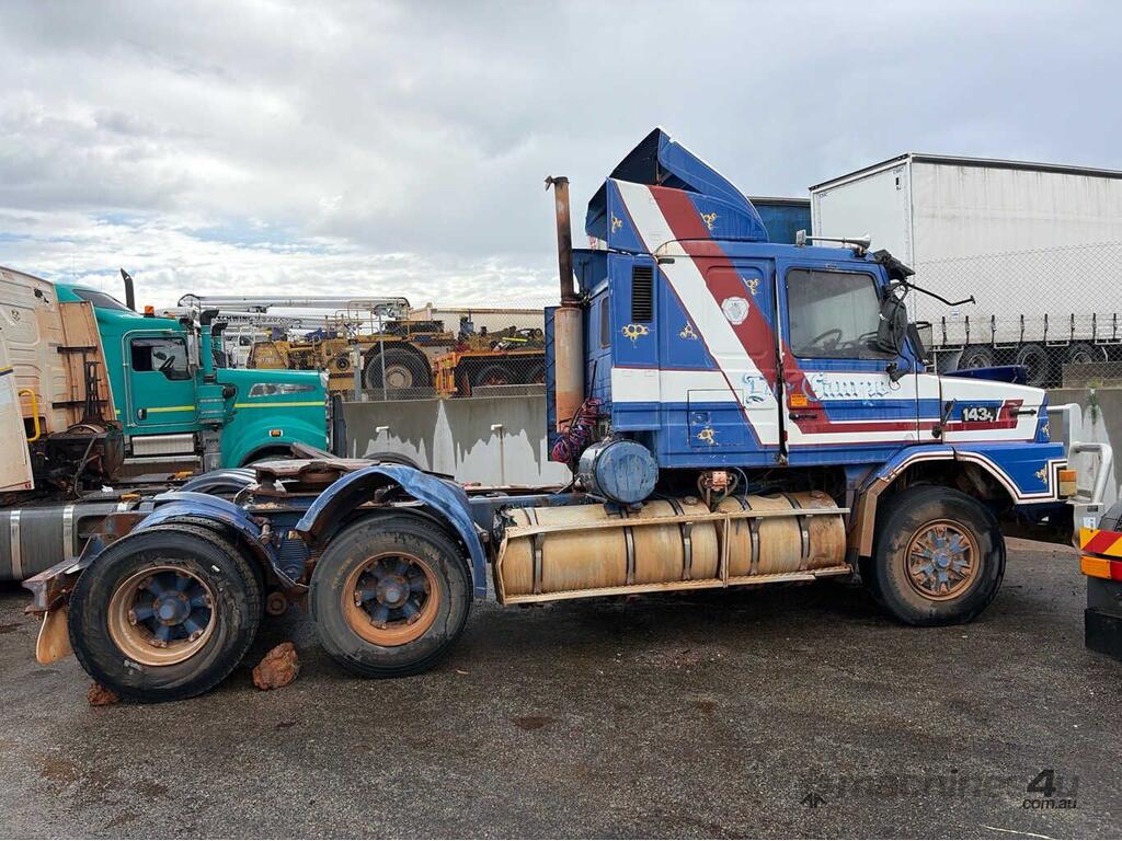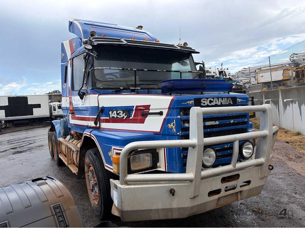 CP: 04/1991,Scania,T143H,Prime Mover Sleeper Cab,Manual,Trunnion,8 Cyl,Diesel Turbo,47828 (Kms. Showing on Odometer),Hourmeter not visible,Colour: Blue,Rego. No: 1ZYG114 WA,VIN: YS2TH6X4Z01147272,GVM: 26500,Sold with No Plates,WOVR Status: WOVR N/A,Incident Type: Impact