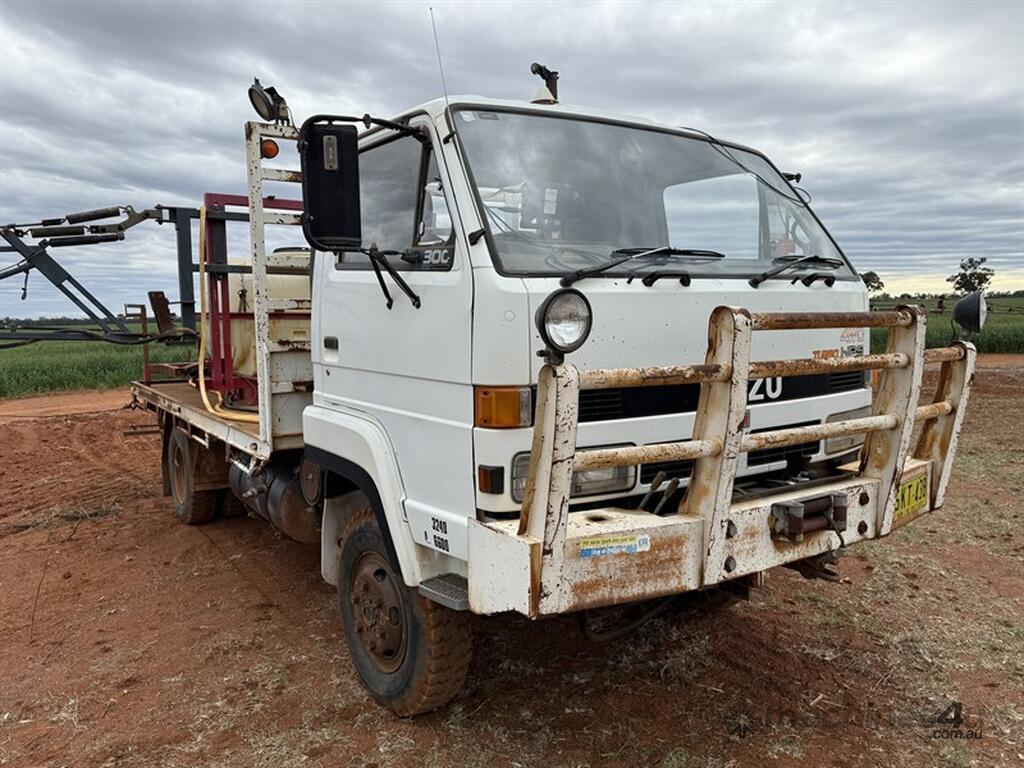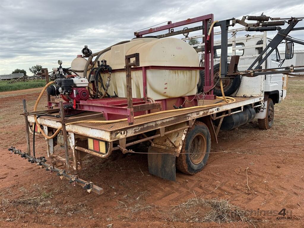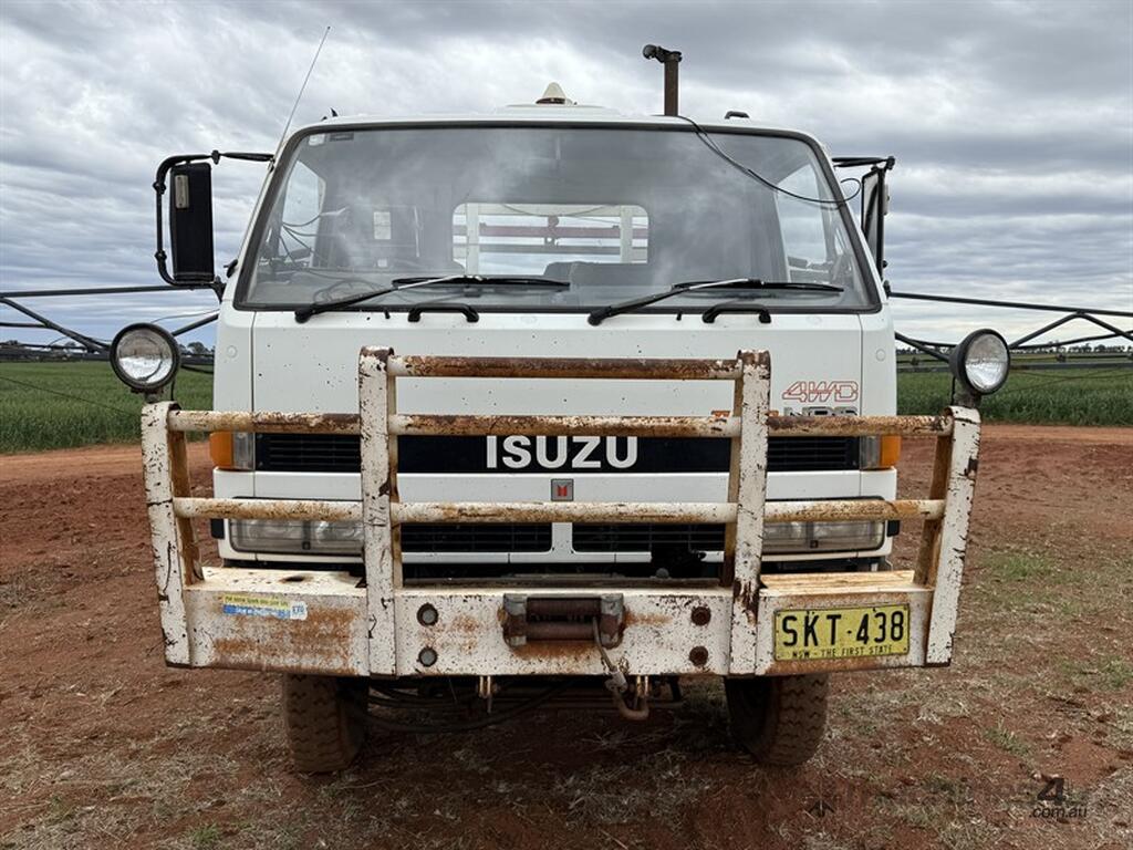 1992 ISUZU NPS59 + BRUMBY CROPLANDS SPRAYER. VIN JAANPS59LN7100114. 24 metre boom. 1200 litre main tank. Honda motor powers the Croplands Brumby sprayer. 3 section control. Hose for spot spraying. Lightbar GPS. 4x4 truck, with hydraulic winch. Spares included in photos. Located Nyngan, NSW