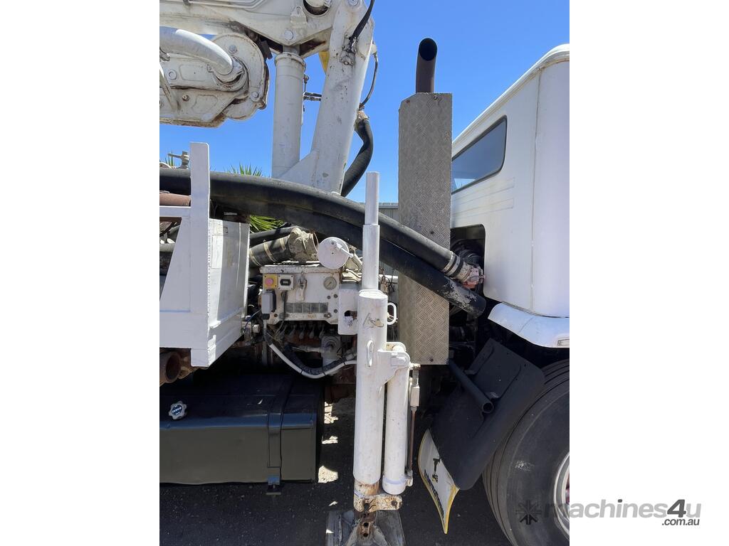 This unit features a Squeeze Crete Model 50 concrete boom pump mounted on a reliable International 1850 chassis, powered by a Phaser 210 Turbo Diesel engine. Compact and compliant with current overhang regulations, it’s an ideal option for operators seeking a smaller, ready-to-work concrete pumping unit.
