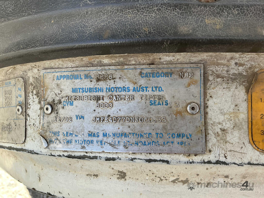 CP: 11/1992,Mitsubishi Fuso,Canter,Table Top,Manual,Diesel,277489 (Kms. Showing on Odometer),Hourmeter not visible,Colour: White,Rego. No: NP(FCE209), Unregistered VIC,VIN: JMFE4D77DNJ060133,Length: 12 ft,GVM: 6000,GCM: 7000,Sold with No Plates,WOVR Status: WOVR N/A,Incident Type: Malicious