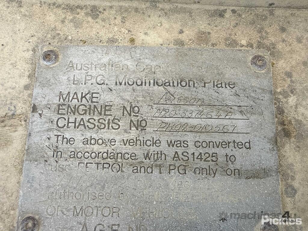 CP: CIRCA 1992,Built: 01/1992,Nissan,PH02A250,Forklift,Engine #: H20337464A,4 Cyl,Petrol,Odometer not visible,3753 (Hrs. Showing on Hour meter),Colour: Red,Rego. No: UWC939 NSW,Serial No: PH02010567,Sold with No Plates