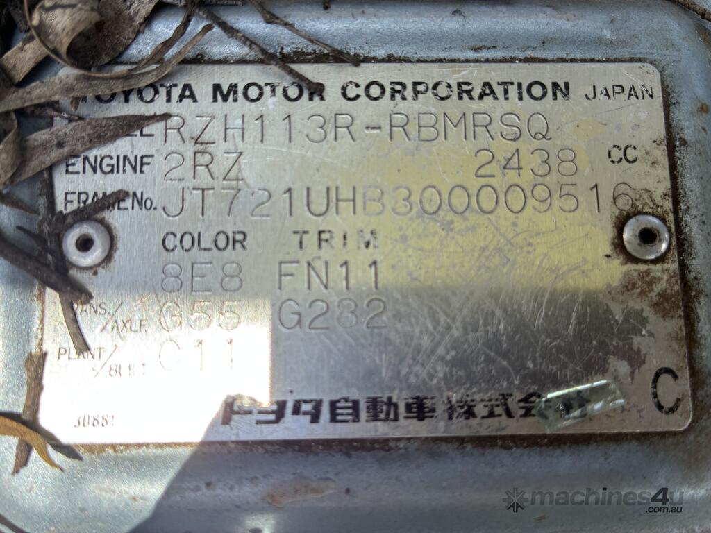 CP: CIRCA 1992,Toyota,Hiace,RZH113R,Van,4 doors,Manual,Engine #: 2RZ2908166,2.4 Ltr,4 Cyl,Petrol - Unleaded ULP,Carburettor Single,5 Gears,Odometer not visible,Colour: White,Rego. No: NP(680ZIX), Unregistered QLD,VIN: JT721UHB,Sold with No Plates