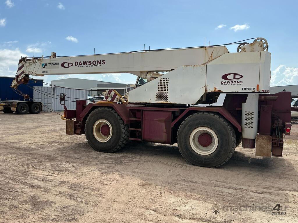 CP: CIRCA 1993,Tadano,TR-200M,Rough Terrain Crane,Diesel,61716 (Kms. Showing on Odometer),2339 (Hrs. Showing on Hour meter),Colour: White,Rego. No: NP(182KFS), Unregistered QLD,Serial No: 521564,Sold with No Plates