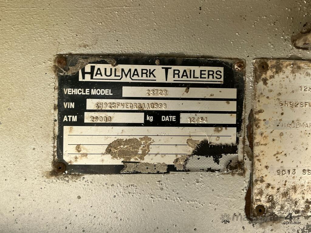 CP: 12/1994,Haulmark,2ST29,Tandem Axle Flat Top Trailer,Hubometer not visible,Colour: White,Unregistered,VIN: 6H92SFWEDRBAA0998,Sold with No Plates