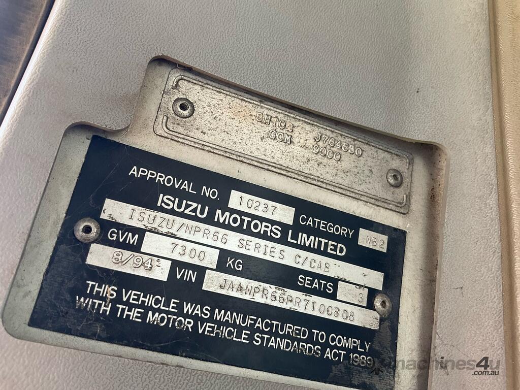 CP: 08/1994,Isuzu,NPR 66,Service Body,Manual,Spring,Diesel,Turbo,332625 (Kms. Showing on Odometer),Hourmeter not visible,Colour: White,Rego. No: NP(XP53AN), Unregistered NSW,VIN: JAANPR66PR7100808,Length: 15 ft,GVM: 7300,GCM: 9000,Sold with No Plates,WOVR Status: WOVR N/A,Incident Type: Malicious,Impact
