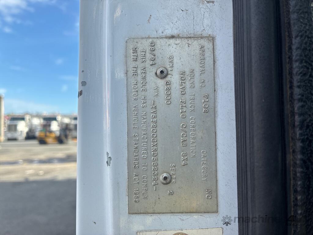 CP: 09/1994,Volvo,FL10,Fuel Tanker,Manual,Spring,6 Cyl,Diesel,433151 (Kms. Showing on Odometer),6179 (Hrs. Showing on Hour meter),Colour: White,Rego. No: NP(604SMP), Unregistered QLD,VIN: YV5F2CCGXRD562324,Key No: 317,GVM: 32000,GCM: 44000,Sold with No Plates,Key No: 317
