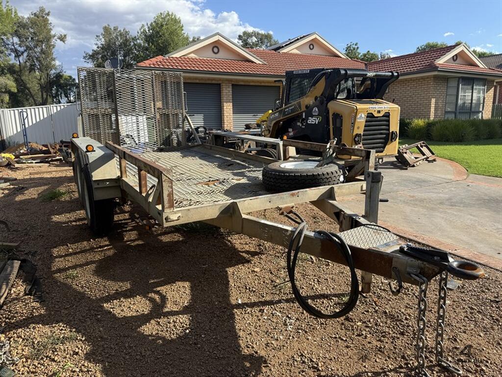 1995 CLASSIC TRAILERS Plant Trailer. Bogie Axel. Fully Galvanised with walkway mesh deck. Spring Suspension. Scam Air Brakes with Maxi Boosters. Spring assisted one piece loading ramp. 1500mm long x 1870mm wide. Heavy duty landing leg. 2 x Jerry can holders. LED lights. Spare Tyre included. ATM:4490kgs TRAILER VIN 6F0CLASICSCT04891. Located: Dubbo NSW.