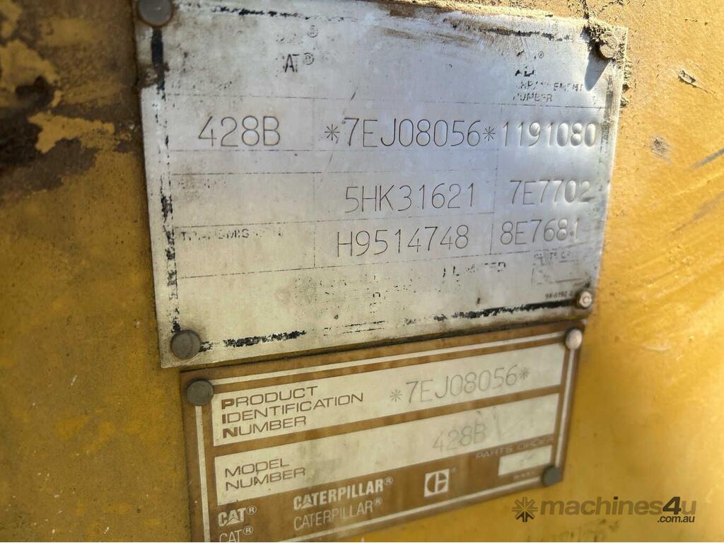 CP: CIRCA 1995,Caterpillar,428B,4x4 Backhoe/Loader,4 Cyl,Diesel,Odometer not visible,8696 (Hrs. Showing on Hour meter),Colour: Yellow,Rego. No: NP(48915D), Unregistered NSW,Serial No: 7EJ08056,Sold with No Plates,Key No: 6