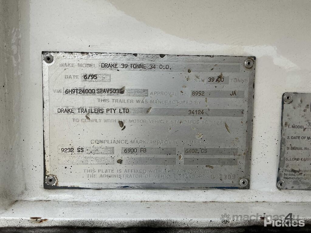 CP: 06/1995,Drake,3x4 Deck Widening Low Loader,0 (undefined),Colour: White,Rego. No: NP(YB57IN), Unregistered NAT,VIN: 6H9T24000S2AV5035,Sold with No Plates