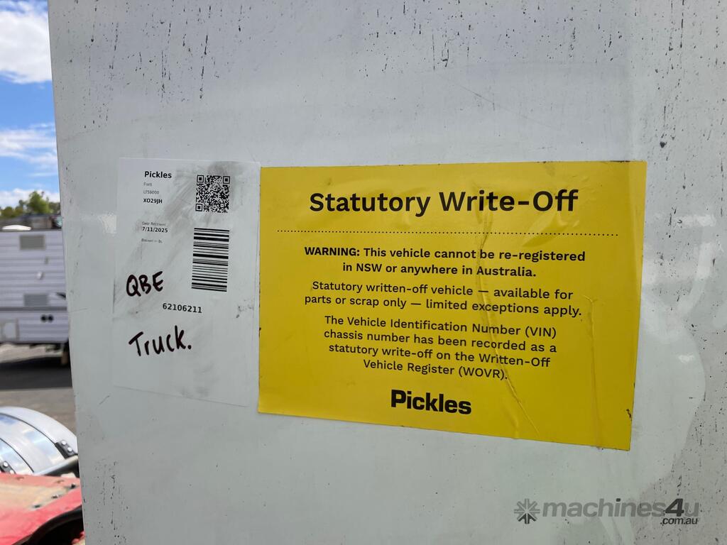 CP: CIRCA 1995,Ford,LTS9000,6x4 Sleeper Cab Prime Mover,Airbag Suspension ,6 Cyl,Diesel,Odometer not visible,Hourmeter not visible,Colour: White,Rego. No: NP(XO29JH), Unregistered NAT,VIN: 6FPAAAAHG3ST52634,Sold with No Plates,WOVR Status: Statutory Write-Off,Incident Type: Fire