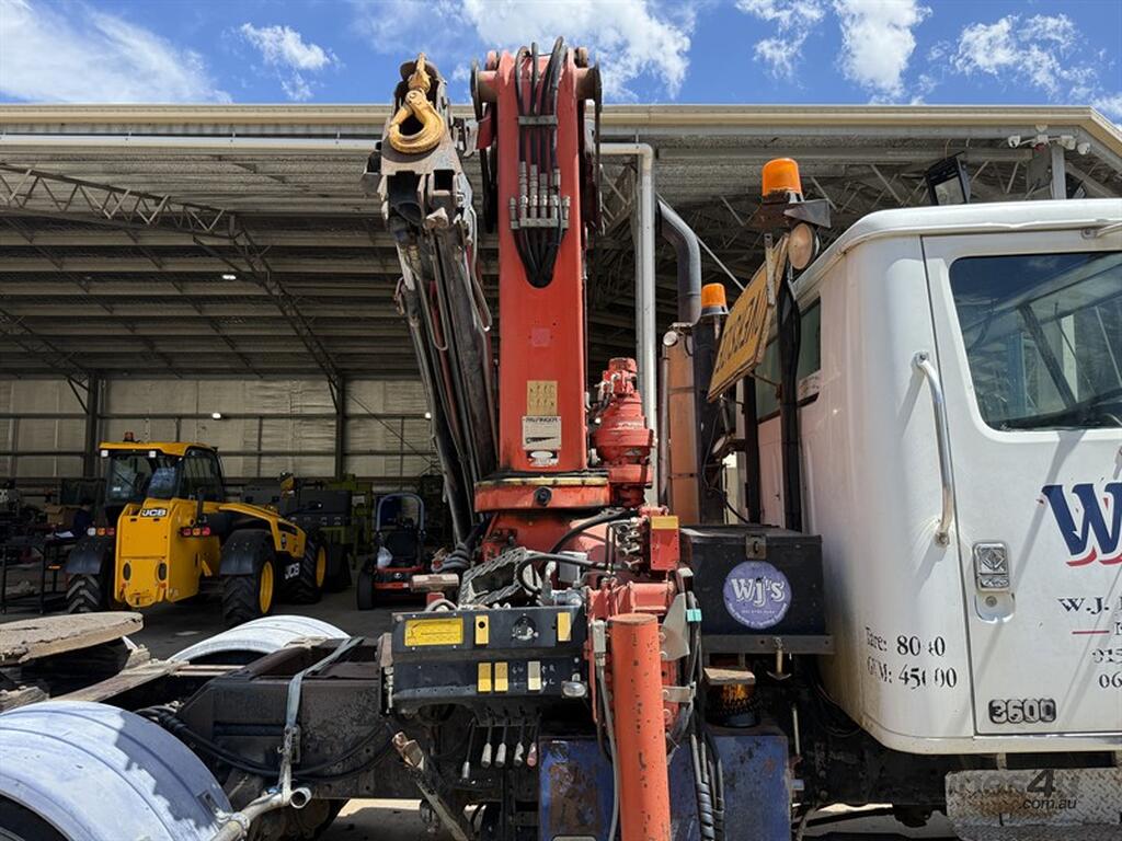 1995 International S LINE 3600 Prime Mover. Sold unregistered but with a road worthy certificate, ODO showing 253,577kms, Palfinger PK22000B crane fitted (there is a crack in the crane and needs repair). Sold as is where is. Located at Moree NSW, available at MRE Auctions online sale.