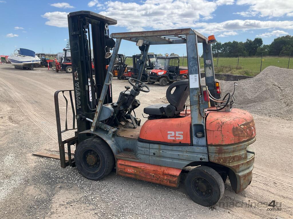 CP: CIRCA 1995,Toyota,42-6FG25,Forklift,4 Cyl,Petrol & LPG (Dual),Odometer not visible,11312 (Hrs. Showing on Hour meter),Colour: Orange,Unregistered NSW,Serial No: 406FG2512581,Sold with No Plates,WOVR Status: WOVR N/A,Incident Type: Impact