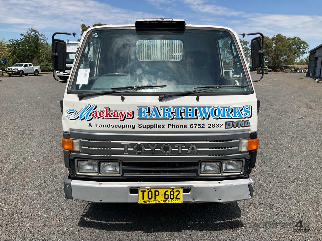 CP: 01/1995,Toyota,Dyna,Tipper,Manual,Spring,Diesel,5 Gears,133732 (Kms. Showing on Odometer),Hourmeter not visible,Colour: White,Rego. No: TOP682 NSW,Rego expiry: 30/06/2026,VIN: JT731BU,Length: 4.7 m,GVM: 4450,Sold with No Plates