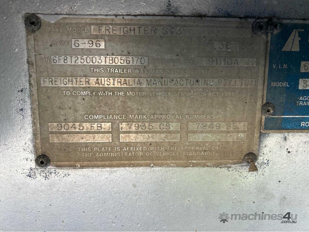 CP: 06/1996,Freighter,ST3,Tri Axle Flat Top Curtainsider B Trailer,Hubometer not visible,Colour: White,Unregistered,VIN: 6F8T25003TB056170,Sold with No Plates