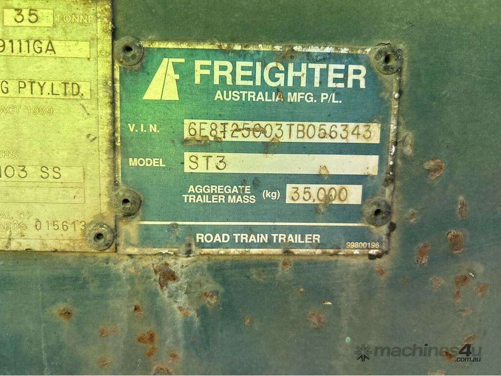CP: 08/1996,Freighter,ST3,Tri Axle Skel Trailer,1130577 (Kms. Showing on Hubometer),Colour: Grey,Rego. No: 30901S VIC,VIN: 6E8T25003TB056343,Sold with No Plates