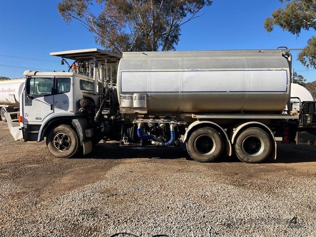 1996 INTERNATIONAL ACCO 2350 G. VIN 6F2252300TDC01115. 6 speed Allison automatic transmission. Cummins B250 engine. Fuel tank and pumping gear x 2 (diesel and petrol). Retractable fuel hoses. Tank is still certified. Was main delivery truck for many years. Surplus to needs. Kept as backup truck for the last 12 months. 17,600 litre total capacity. Drum rack at rear. Steer and drive tyres are estimated to be at 30-40%. Sold unregistered. Located Marrar, NSW. For all enquries, please contact Riverina agent Gar