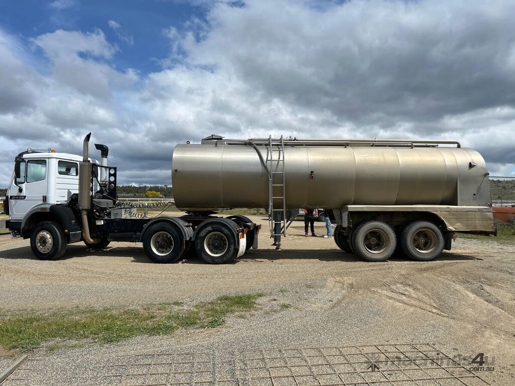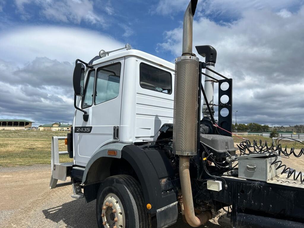 CP: 06/1996,Mercedes Benz,2435 Super Class,Truck & Trailer Combination ,Manual,Leaf Spring Suspension ,8 Cyl,Diesel,18 Gears,147993 (Kms. Showing on Odometer),Hourmeter not visible,Colour: White,Rego. No: R00232,VIN: WDB6581376K093599,GVM: 24000,GCM: 48000,Sold with No Plates