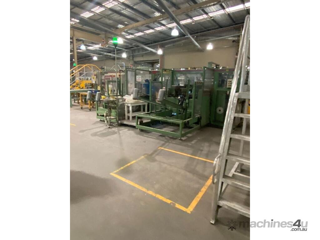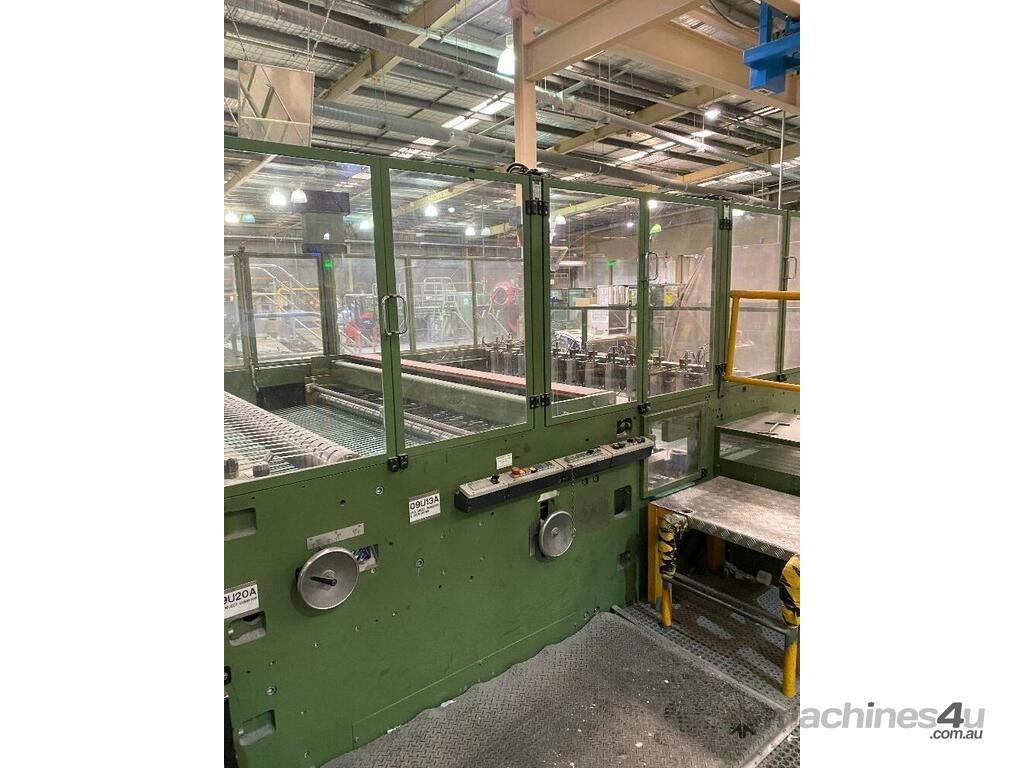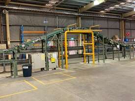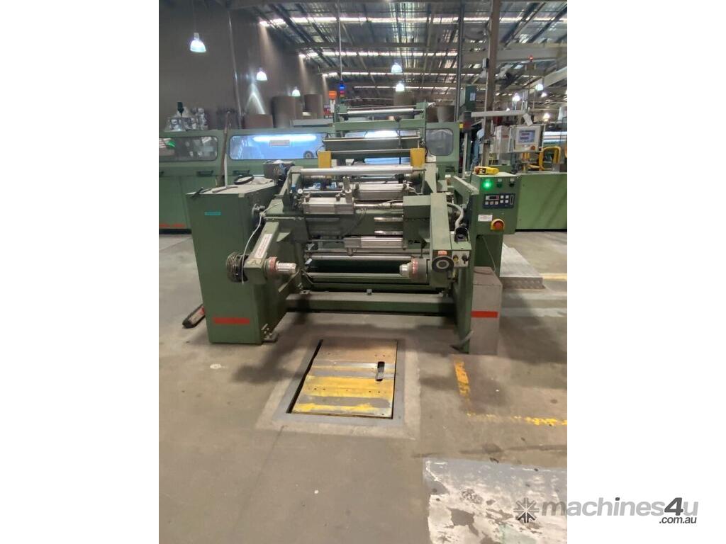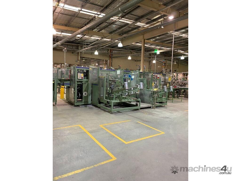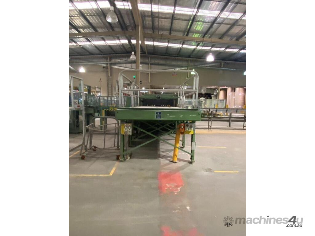 Sheeter complete with line for paper wrapping, labelling, ream collator, two box lines, conveyor to pallet stacker;
