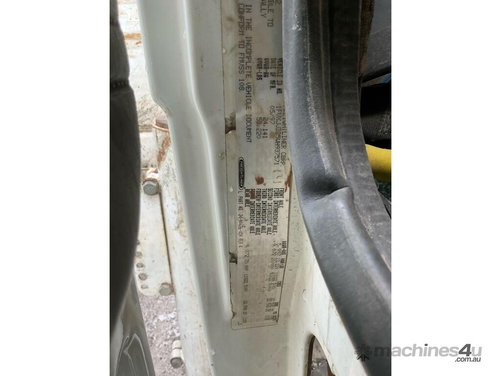 CP: 07/1997,Freightliner,FL80,Service Body,Automatic,6 Cyl,Diesel,162261 (Kms. Showing on Odometer),Hourmeter not visible,Colour: White,Unregistered,VIN: 1FVXJJBB5WH937571,GVM: 24000,Sold with No Plates,WOVR Status: WOVR N/A,Incident Type: Malicious