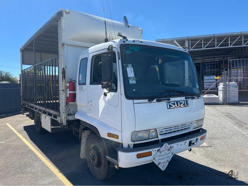 CP: 02/1997,Isuzu,FRR 500A,Curtain Sider (Missing Curtains),Manual,Leaf Spring ,4 Cyl,Diesel Turbo,5 Gears,532746 (Kms. Showing on Odometer),5156 (Hrs. Showing on Hour meter),Colour: White,Rego. No: SB11HY SA,VIN: JALFRR33HT3000344,Key No: P11,Length: 7.5 m,GVM: 10000,GCM: 16000,Sold with No Plates,Key No: P11