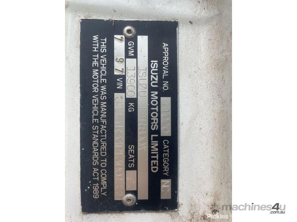 CP: 07/1997,Isuzu,FTR,Crew Cab Chipper Tipper,Manual,Spring Suspension ,Isuzu,6 Cyl,Diesel,5 Gears,962469 (Kms. Showing on Odometer),1448 (Hrs. Showing on Hour meter),Colour: White,Rego. No: NP(XQ27QU), Unregistered NAT,VIN: JALFTR33PT3001339,Length: 8.6 m,GVM: 13900,GCM: 20500,Sold with No Plates,WOVR Status: WOVR N/A,Incident Type: Impact