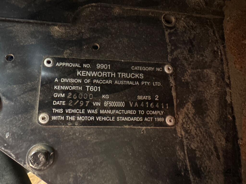 CP: 02/1997,Kenworth,T601,Water Cart,Manual,airbag,6 Cyl,Diesel,Odometer not visible,Hourmeter not visible,Colour: White,Rego. No: NP(855SNO), Unregistered QLD,VIN: 6F5000000VA416411,Length: 8.5 m,GVM: 26000,Sold with No Plates,WOVR Status: WOVR N/A,Incident Type: Impact