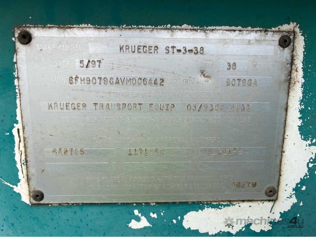 CP: 05/1997,Krueger,ST-3-38,Tri Axle Skel Trailer,9396 (Kms. Showing on Hubometer),Colour: Green,Rego. No: YS80FV,VIN: 6FH9079GAVM006442,Sold with No Plates