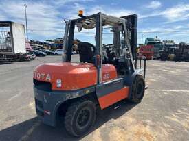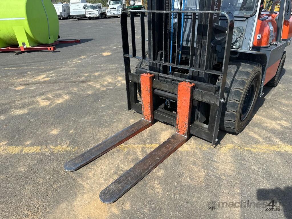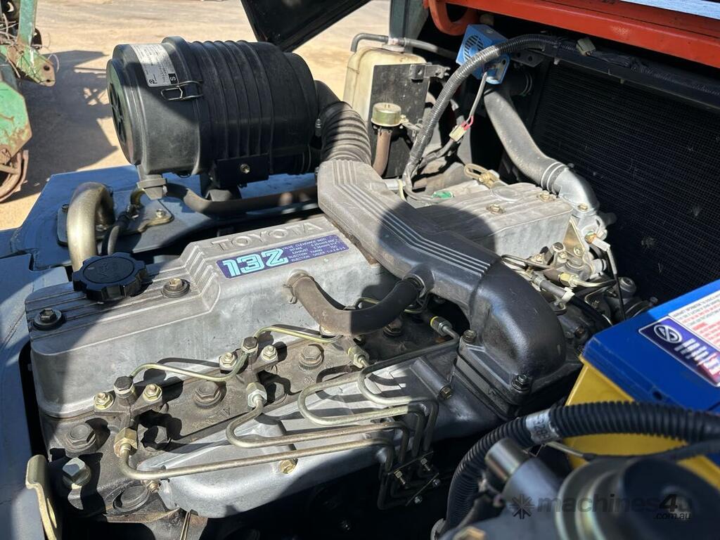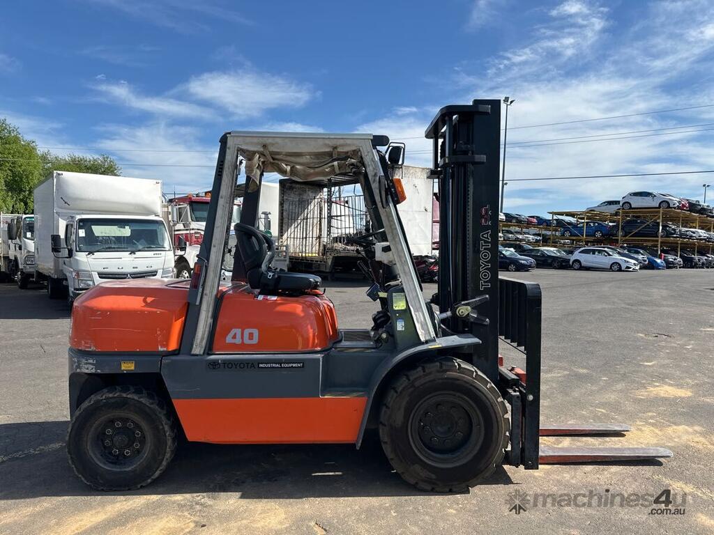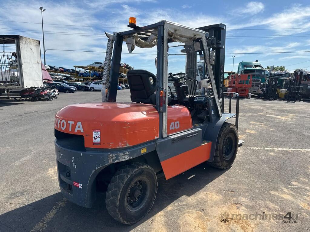 CP: CIRCA 1997,Toyota,02-6FD40,2 Stage Forklift,6 Cyl,Diesel,Odometer not visible,1873 (Hrs. Showing on Hour meter),Colour: Orange,Unregistered,Serial No: 6F04511110,ROPS No: undefined,FOPS No: undefined,Sold with No Plates,Key No: 59
