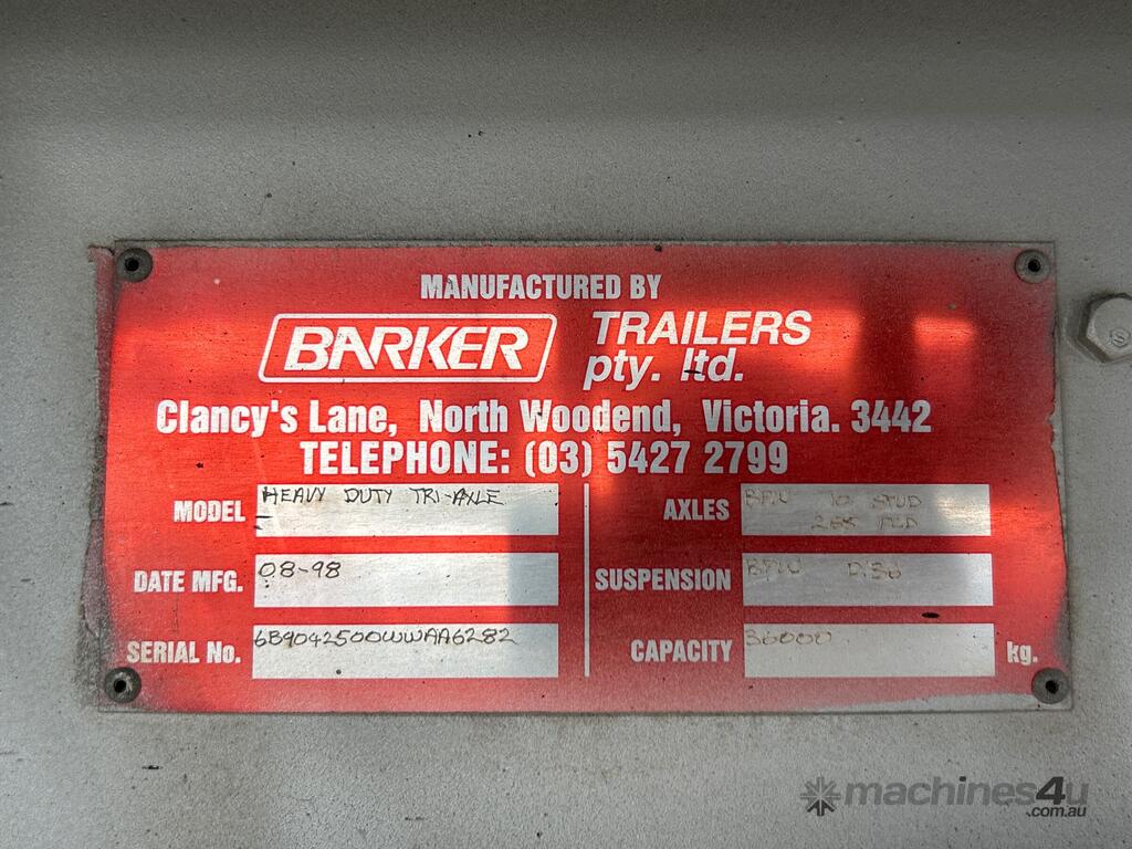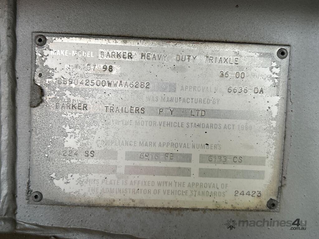 CP: 07/1998,Barker,Heavy Duty Tri Axle,Tri Axle Curtainside A Trailer,Hubometer not visible,Colour: White,Unregistered,VIN: 6B9042500WWAA6282,Sold with No Plates