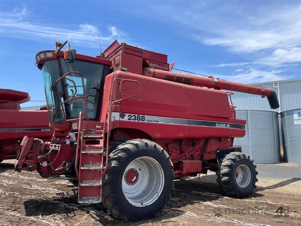 1998 Case IH 2388 with 2 x 30ft Fronts. 8,915 engine hours, 5,635 rotor hours. Sold with 2 x 30ft 1020 flex tin fronts, front dual wheels, chopper, extended grain bin, plenty of spairs, all other guards and covers kept in shed. Located at Claremont QLD, available at MRE Auction online sale.