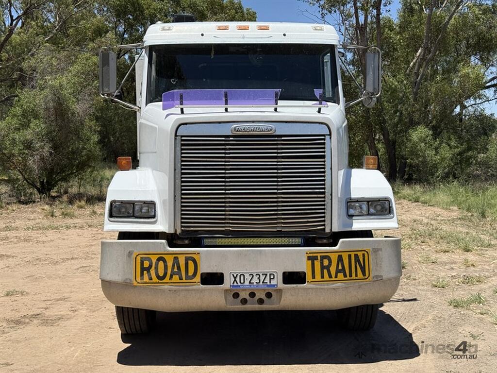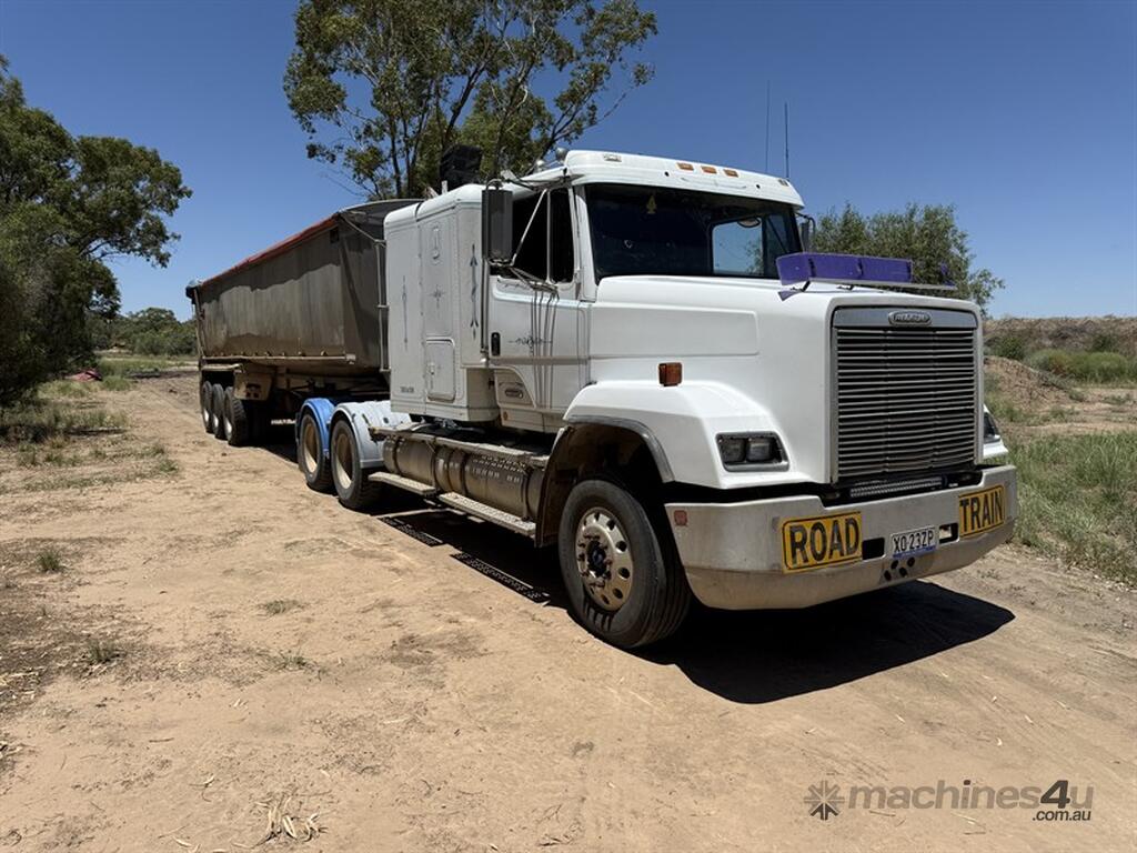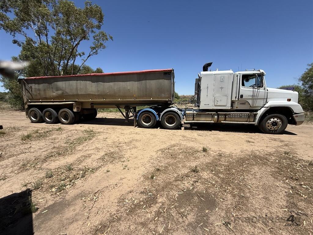 1998 FL112 PRIME MOVER, VIN:1FVYRSZB8WH937802, Speedo reading 457909 km. Truck fitted with Detroit Series 60 motor,13 speed Road ranger gearbox, Rockwell differentials and Airliner air bag suspension.Truck upgraded to 90 ton, PTO fitted with return line, Jost ball race turntable,10-stud aluminium rims and air suspension guage. Front springs and steering box have been replaced. Cab has air conditioning, extra cab fan and a lowline sleeper box.