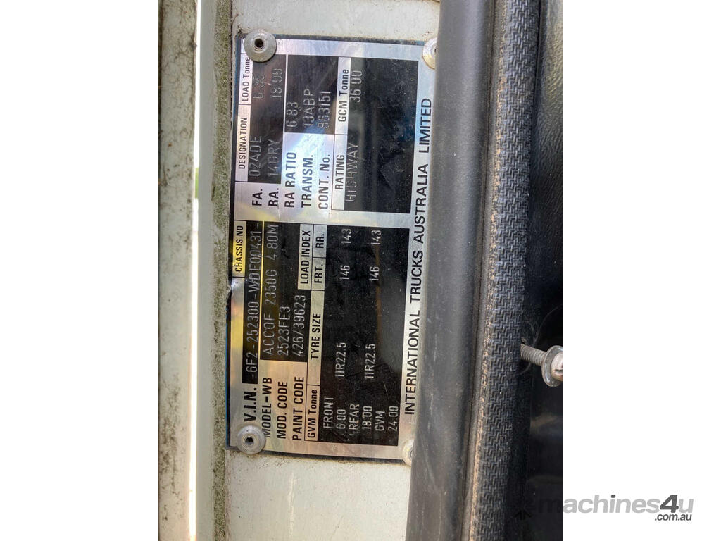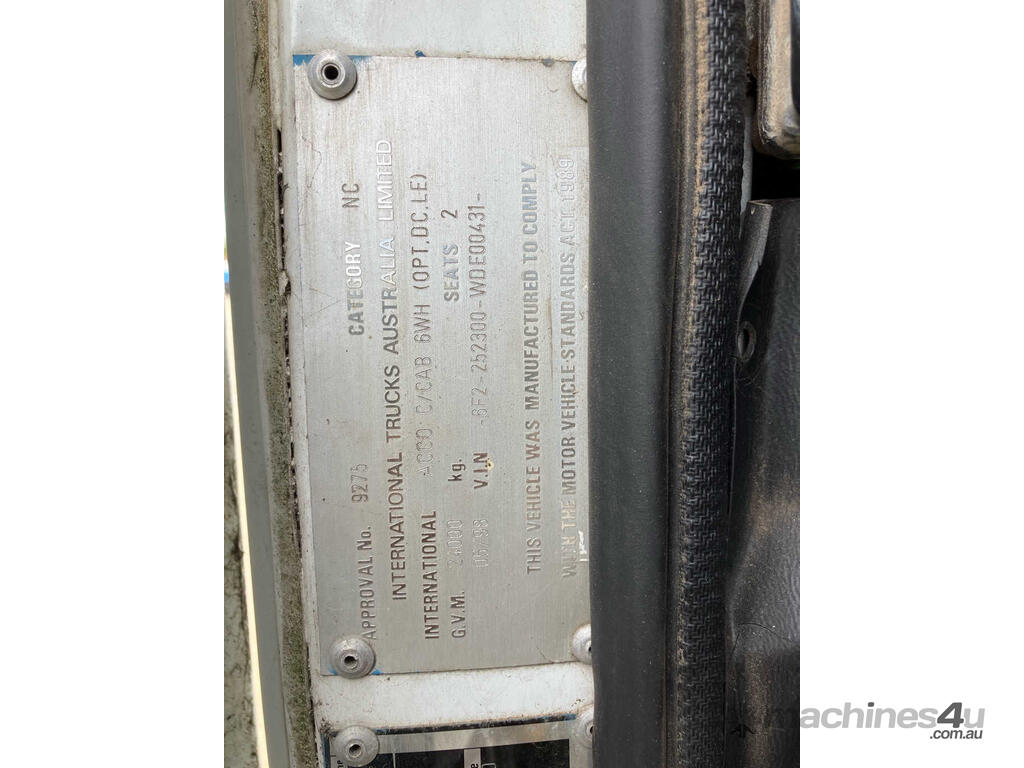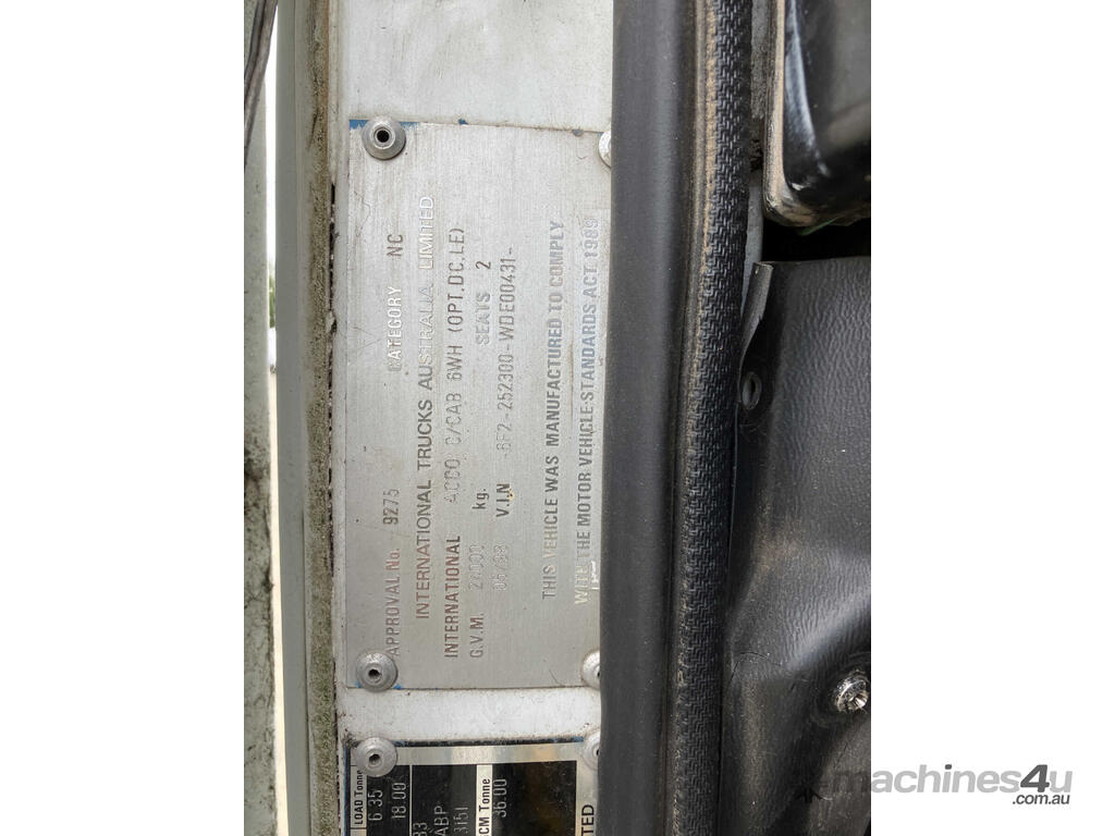 CP: 05/1998,International Acco,2350E,2 Way Tipper,Automatic,6 Cyl,Diesel,Turbo,309152 (Kms. Showing on Odometer),Hourmeter not visible,Colour: White,Rego. No: XN31WH NAT,VIN: 6F2252300WDE00431,Length: 8.85 m,GVM: 24000,GCM: 36000,Sold with No Plates