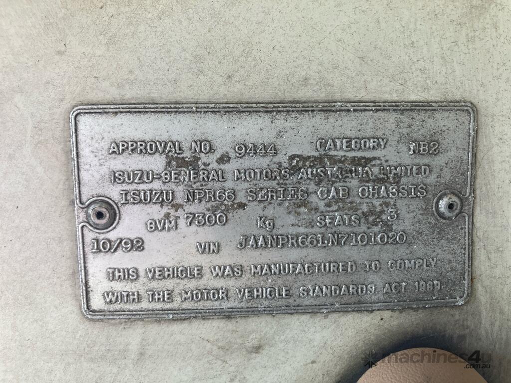 CP: 10/1998,Isuzu,NPR,Cab Chassis Single Cab,Manual,Leaf Springs ,4 Cyl,Diesel,Odometer not visible,Hourmeter not visible,Colour: White,Rego. No: NP(SHT689), Unregistered NSW,VIN: JAANPR66LN7101020,Length: 7.81 m,GVM: 7300,Sold with No Plates,WOVR Status: Statutory Write-Off,Incident Type: Water