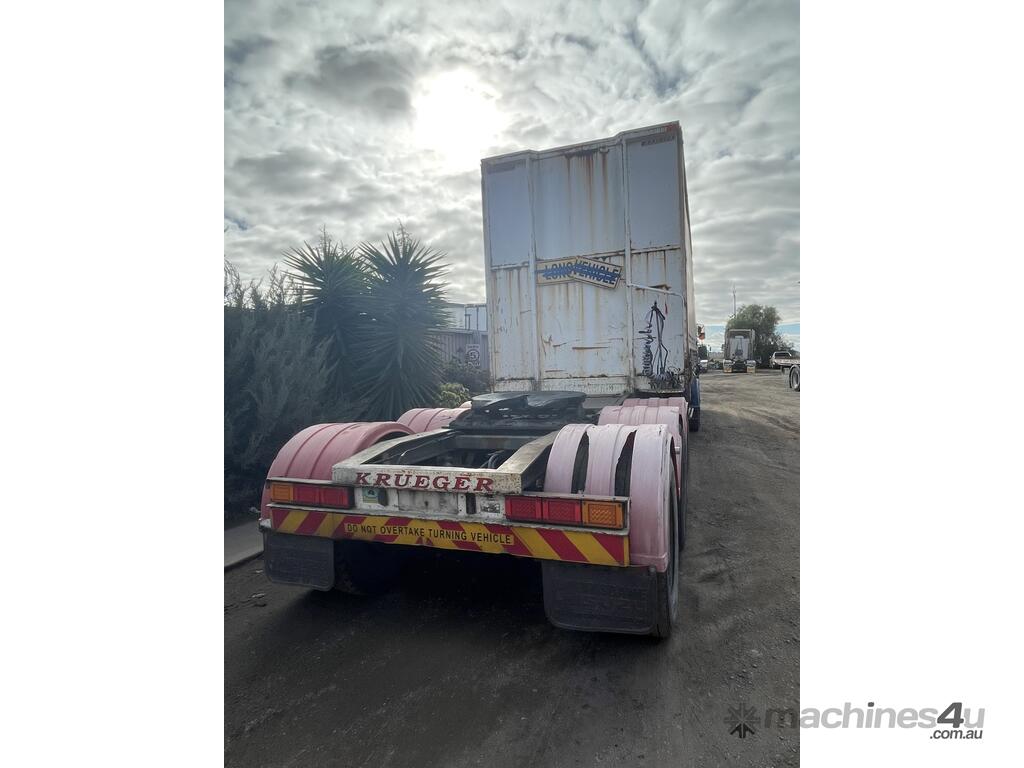 This 1998 Krueger B-Double lead curtainsider trailer is built for durability and performance, featuring air ride suspension and a tri-axle setup. Ideal for freight and general transport use.