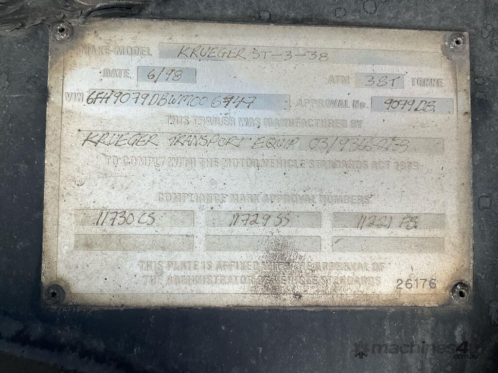 CP: 06/1998,Krueger,ST3,Tri Axle Drop Deck Curtainsider A Trailer,Hubometer not visible,Colour: White,Rego. No: NP(YV12NQ), Unregistered,VIN: 6FH9079DBWM006747,Sold with No Plates
