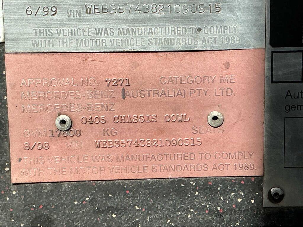 CP: 08/1998,Mercedes Benz,Coach,Automatic,Airbags ,6 Cyl,Diesel Turbo,970720 (Kms. Showing on Odometer),Hourmeter not visible,Colour: White,Unregistered,VIN: WEB0515,Key No: 561S,Length: 12.5 m,GVM: 17600,Sold with No Plates,Key No: 561S