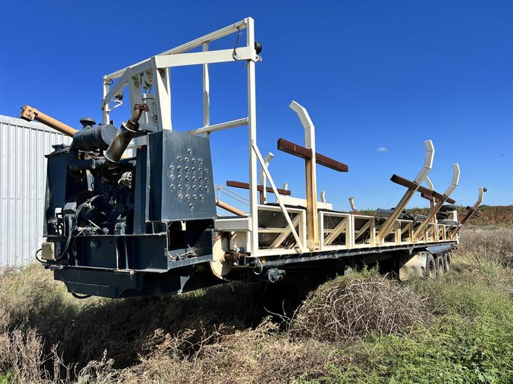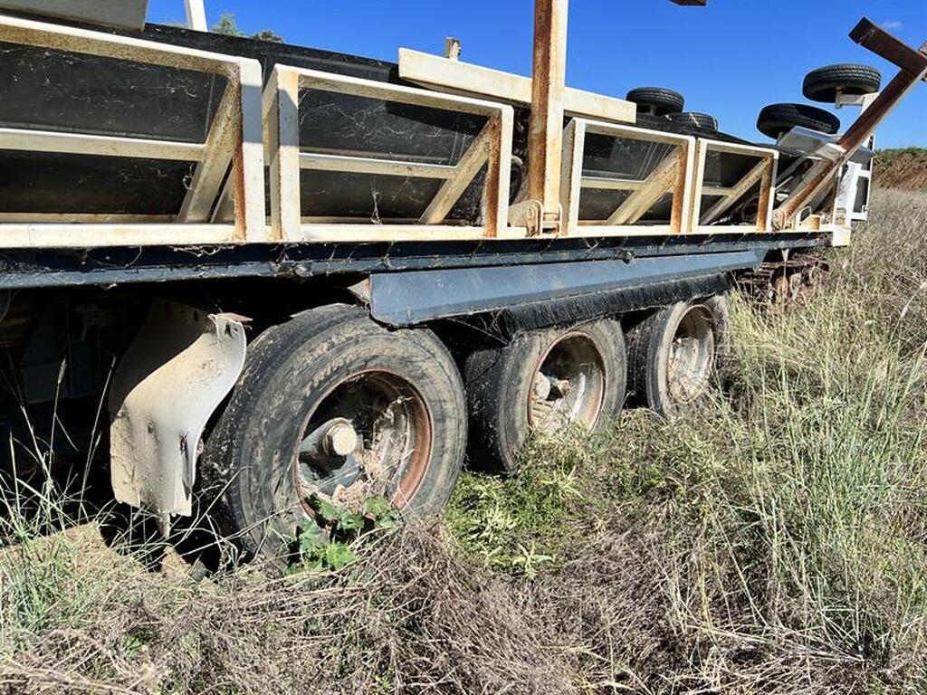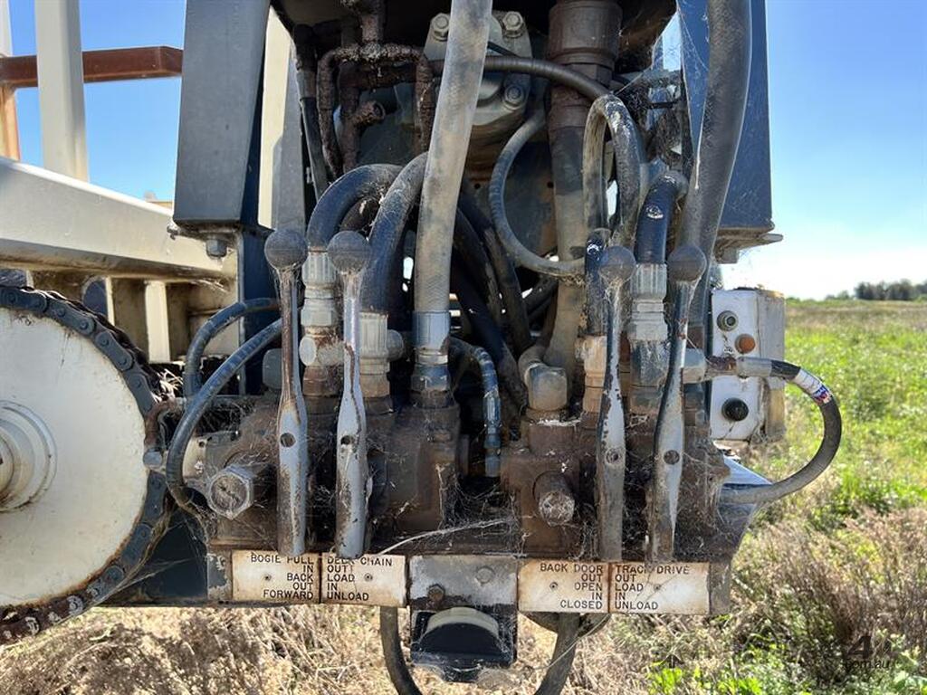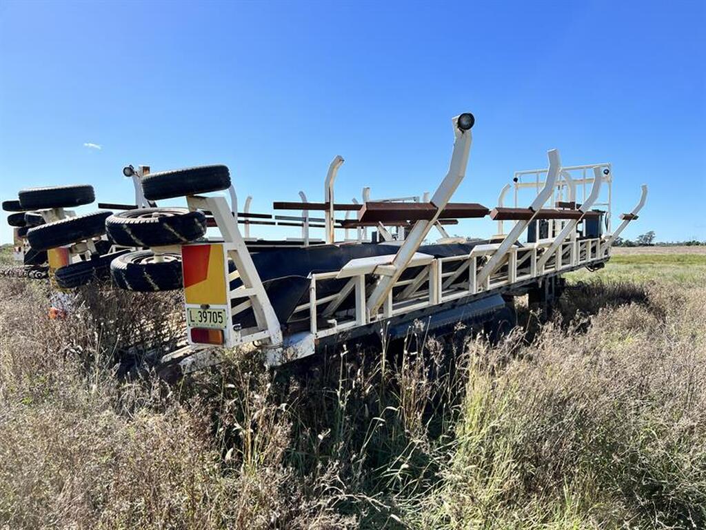 1998 ROUND BALE CHAIN BED TRAILER - Perkins motor, 16460kg tare, 35000kg GVM, currently unregistered, Serial XG1003. Located at Pallamallawa NSW