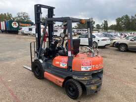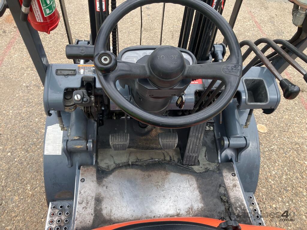 CP: CIRCA 1998,Toyota,42-6FG25,2 Stage Forklift,4 Cyl,Petrol & LPG (Dual),Odometer not visible,12631 (Hrs. Showing on Hour meter),Colour: Orange,Unregistered,Serial No: 33671,Sold with No Plates