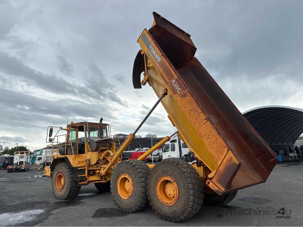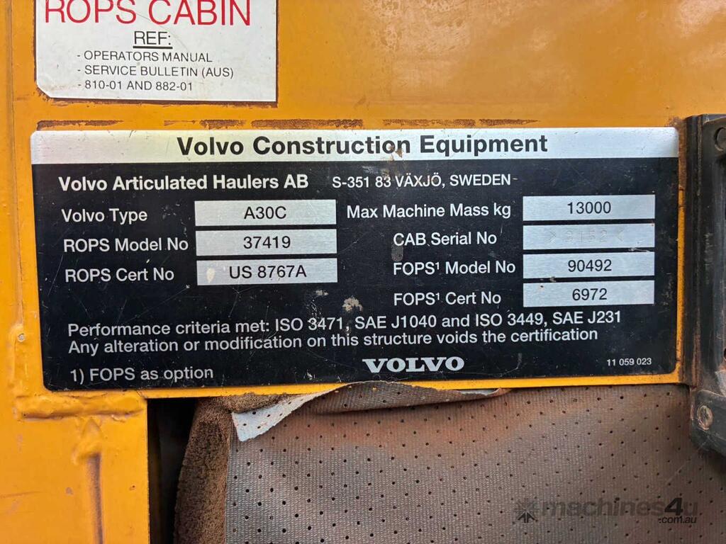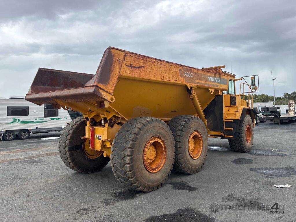 CP: CIRCA 1998,Volvo,A30C,Dump Truck,6 Cyl,Diesel,Odometer not visible,15764 (Hrs. Showing on Hour meter),Colour: Yellow,Unregistered,Serial No: A30CV3062,Sold with No Plates,Key No: 397