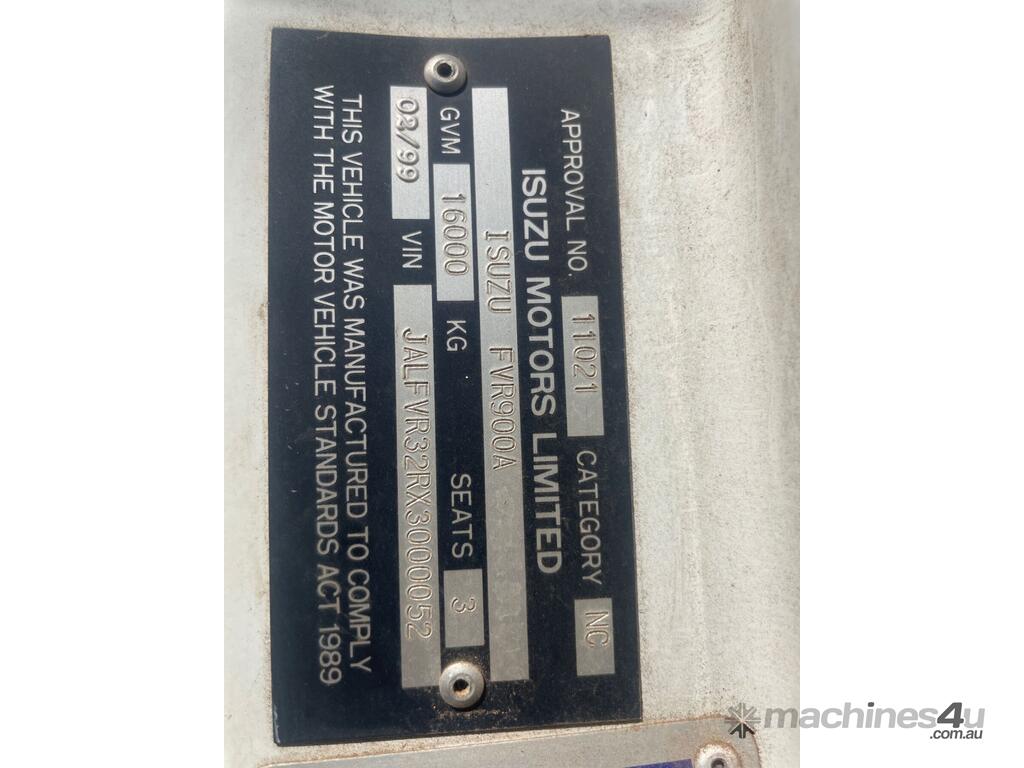 CP: 02/1999,Isuzu,FVR,Tipper,Manual,Spring Suspension ,Isuzu,6 Cyl,7 Gears,334892 (Kms. Showing on Odometer),Hourmeter not visible,Colour: White,Rego. No: NP(783FTS), Unregistered QLD,VIN: JALFVR32RX3000052,GVM: 16000,GCM: 24000,Sold with No Plates,WOVR Status: WOVR N/A,Incident Type: Impact